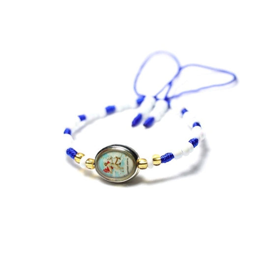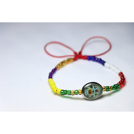 San Chamuel Bracelet: Pink String with Red and Yellow Beads
