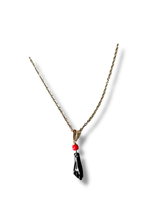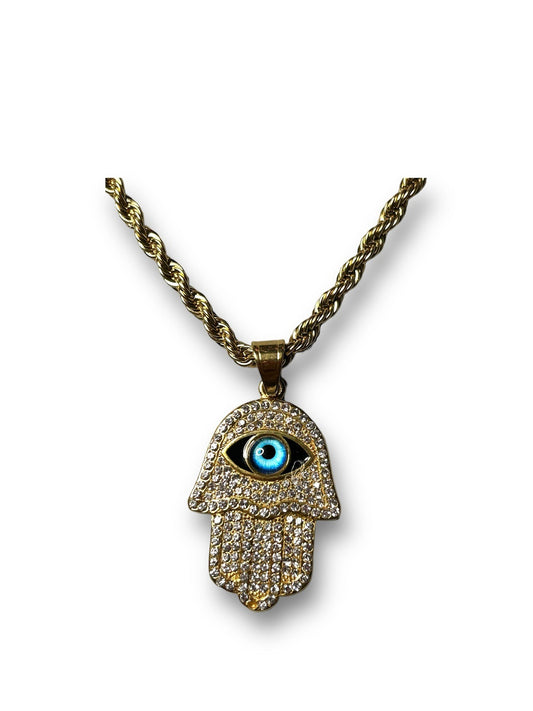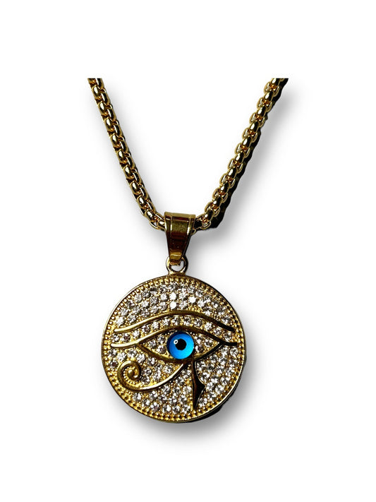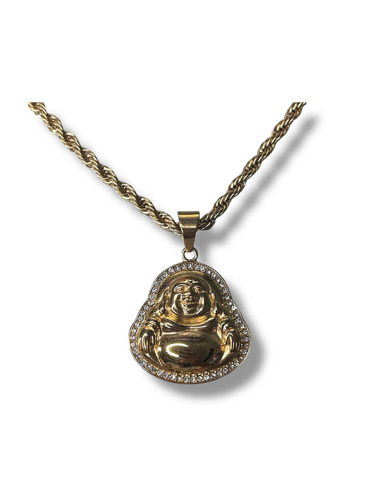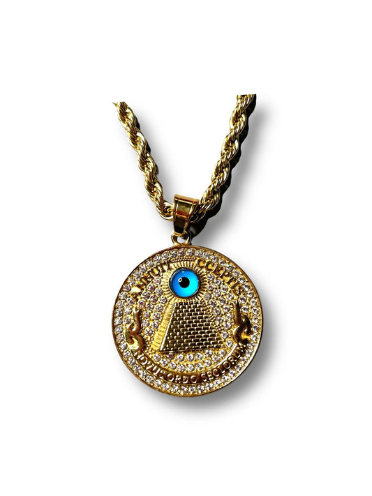 Santa Muerte llena de oro con ojo purl de cristal rojo