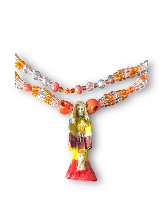 Multicolored Santa Muerte Necklace with Skulls: Symbol of Protection and Transformation