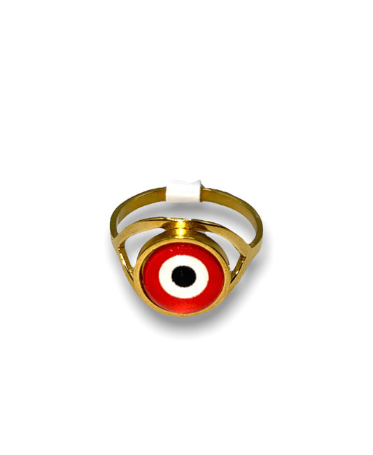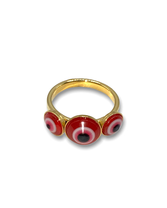 Anillo lleno de oro con 3 ojos malvados rojos | Protección y estilo |
