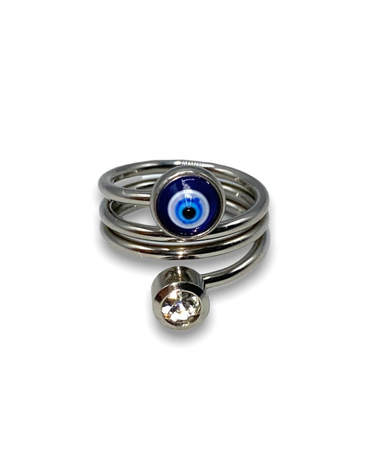 Elegante anillo en espiral de acero inoxidable contra el mal de ojo para protección