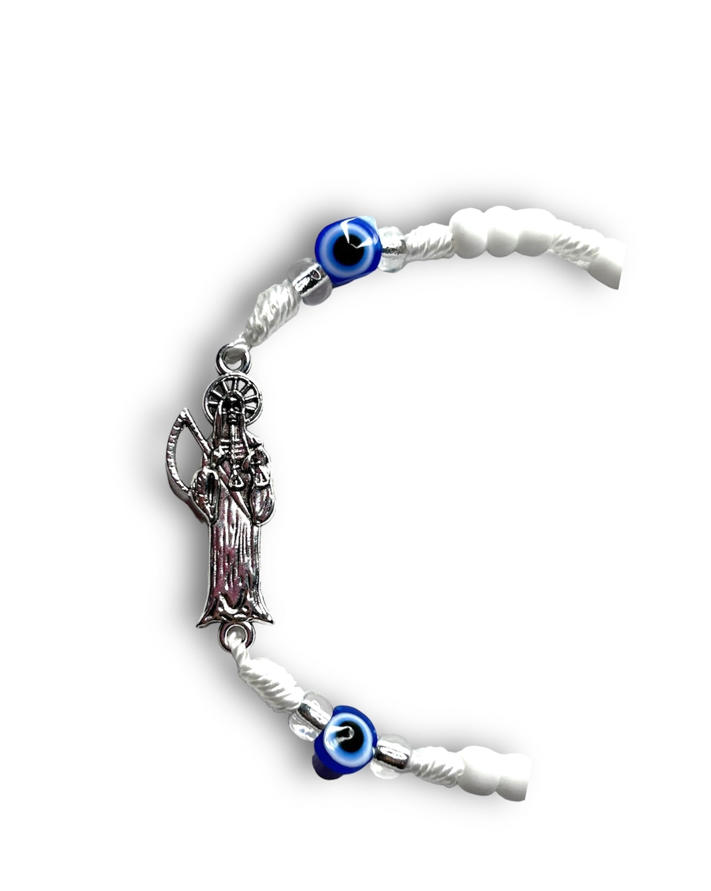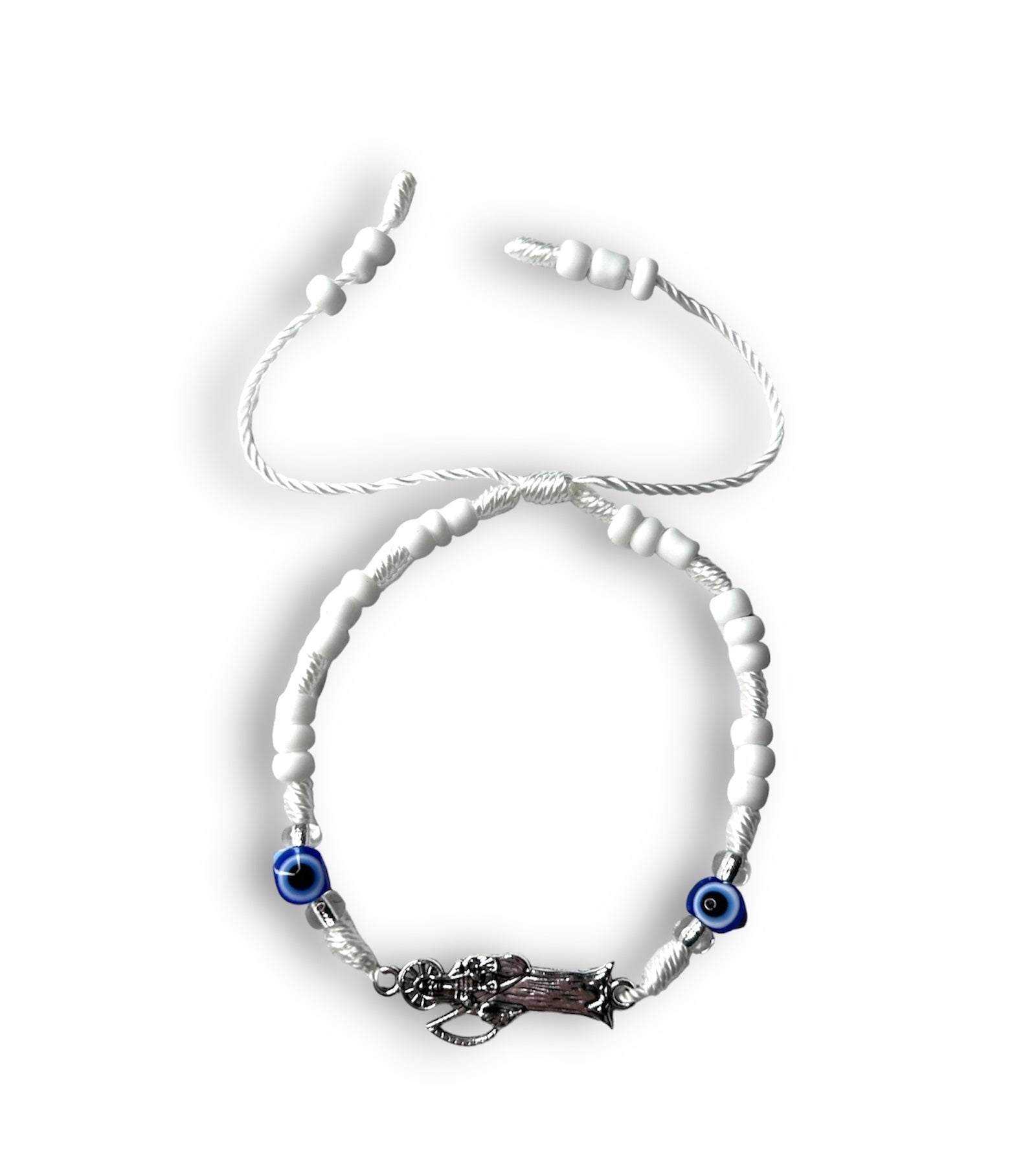 Mystical Harmony: Silver White Santa w Double Nazar Eye