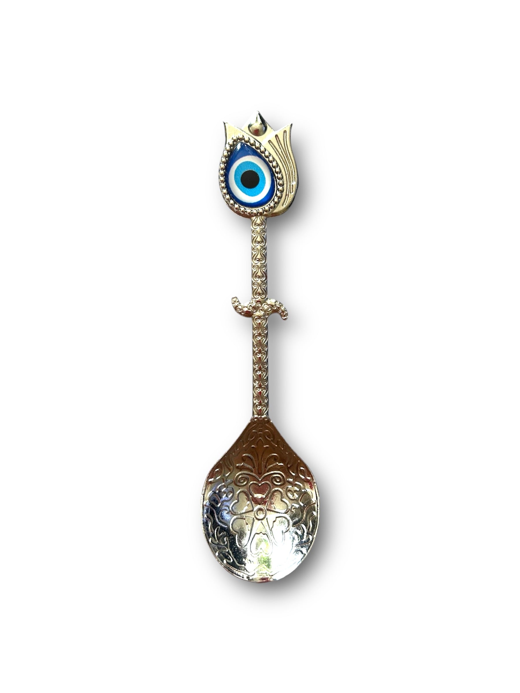 Silver Nazar Eye Spoon with Intricate Art Craft for Spiritual Protection