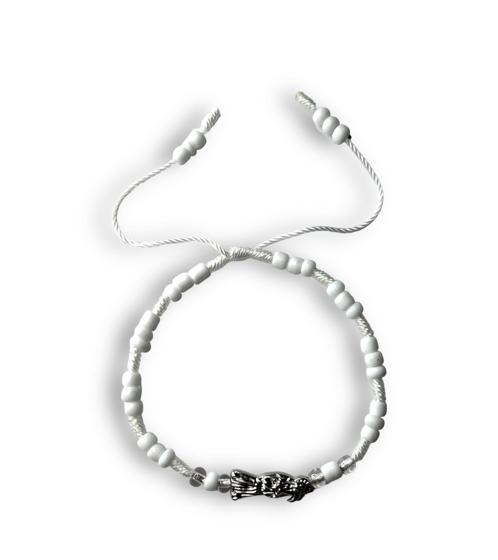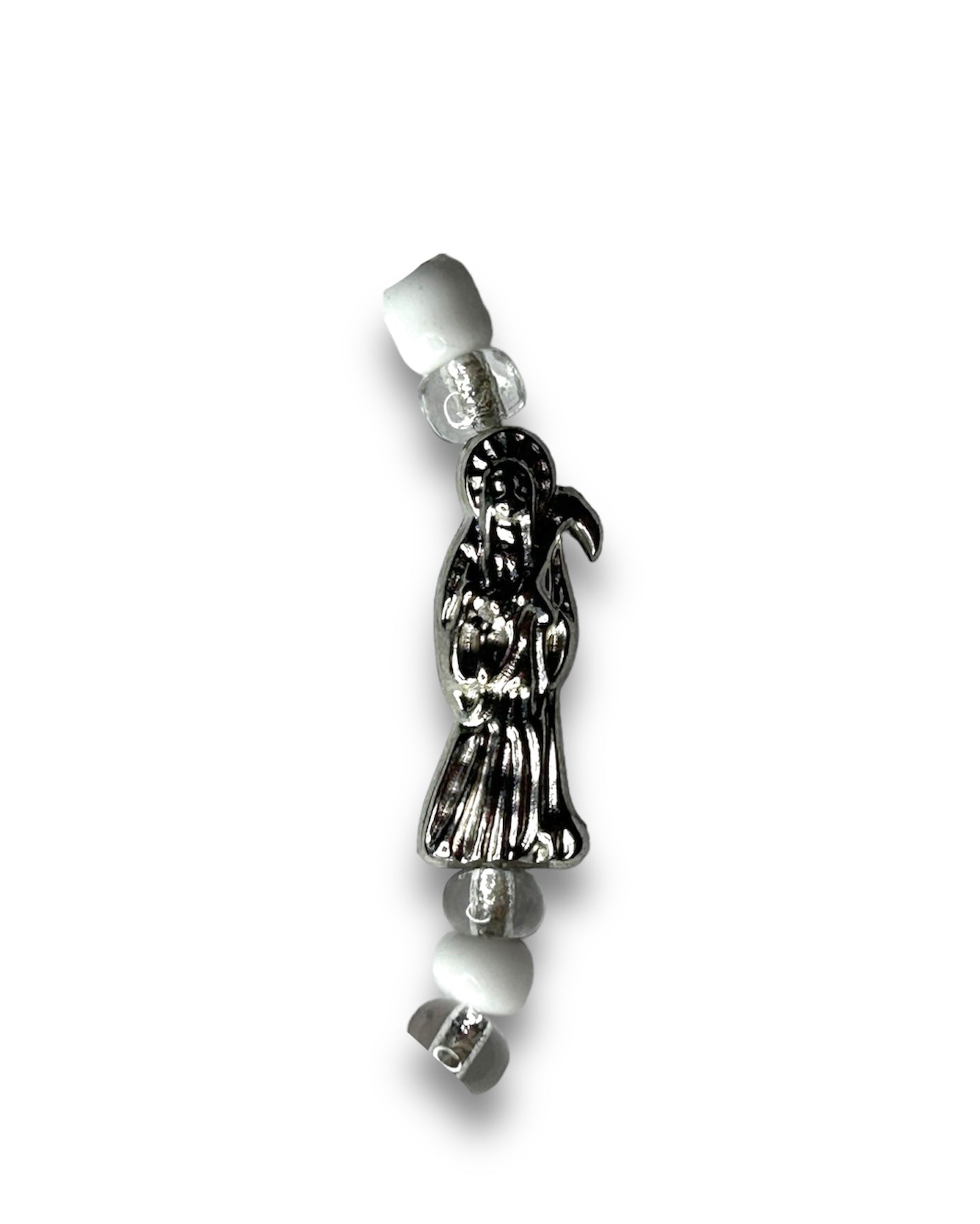 The color white is associated with tranquility, wisdom, and protection, while the skull symbol can represent transformation, mortality, and the shedding of the old self. When combined, a white silver Santa M bracelet provides spiritual protection, ward off negative energies, and promote inner peace. It's often worn as a reminder of the transient nature of life and the importance of embracing change and personal growth.